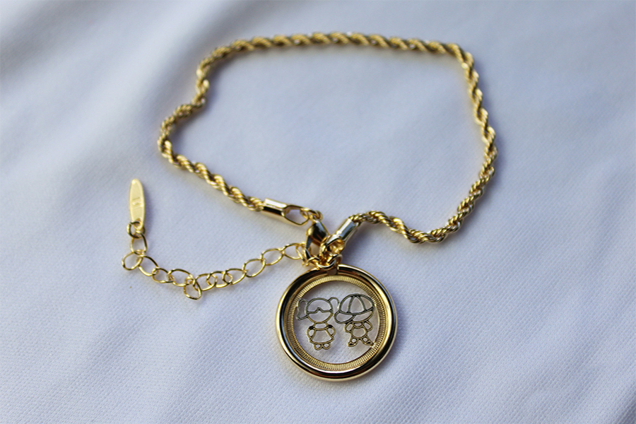 PULSEIRA BANHADA EM OURO, ELO PORTUGUÊS 3mm, ELO CORAÇÃO 4,20mm LARGURA, PINGENTE CORAÇÃO 11mm LARGURA COM MENINA