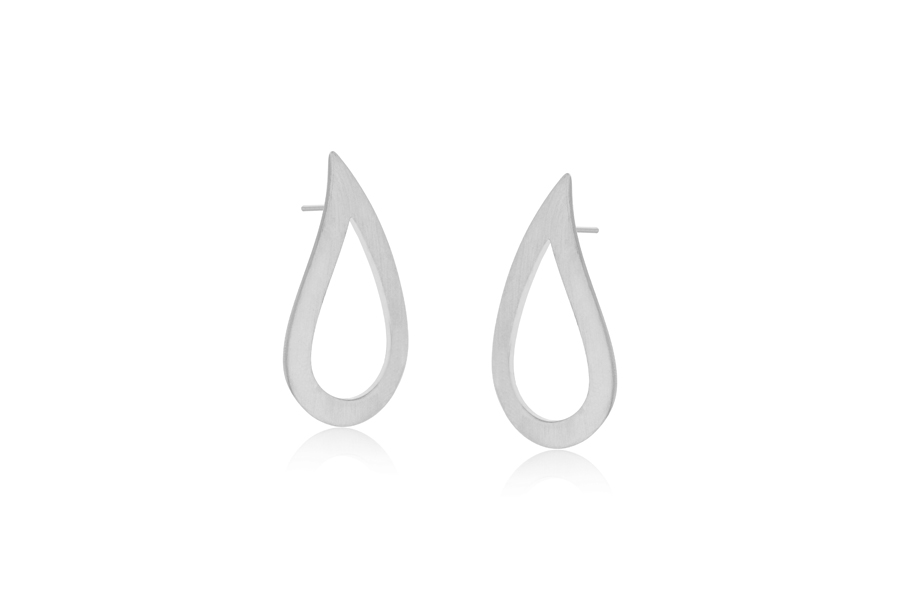 BRINCO BANHADO EM RÓDIO BRANCO, ARGOLA IRREGULAR 25mm ALTURA, LISO OU ACETINADO