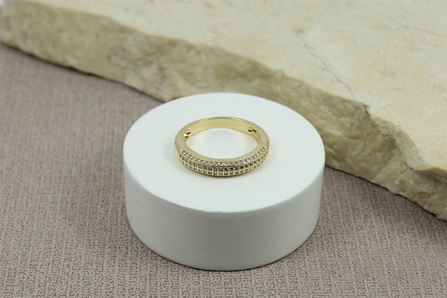 ANEL BANHADO EM OURO, COM ZIRCÔNIAS