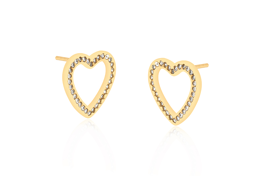 BRINCO BANHADO EM OURO, CORAÇÃO ZIRCÔNIA 8X8mm, PARA QUALQUER COR DE PEDRA