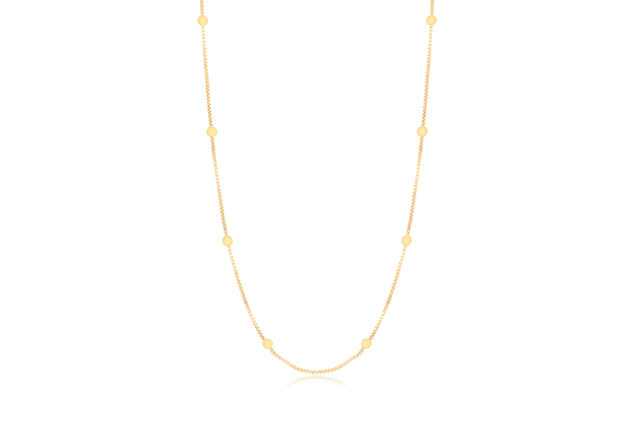 GARGANTILHA BANHADA EM OURO, PONTO DE LUZ 5mm, VENEZIANA 0,80mm, 40cm COMPRIMENTO, LINHA TRADICIONAL