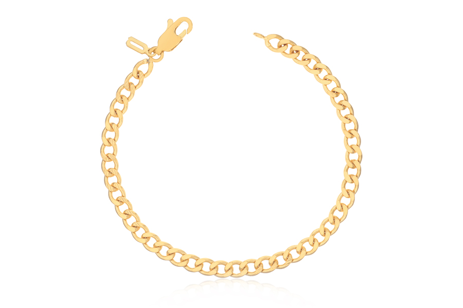 PULSEIRA BANHADA EM OURO, CORRENTE ELO PORTUGUÊS 2,50mm, 17cm COMPRIMENTO, EXTENSOR 5cm COMPRIMENTO E PESO 2,20g
