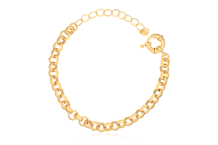 PULSEIRA BANHADA EM OURO, ELO 4mm LARGURA, PIMENTA, CORAÇÃO, CRUZ, OLHO GREGO E PONTO DE LUZ