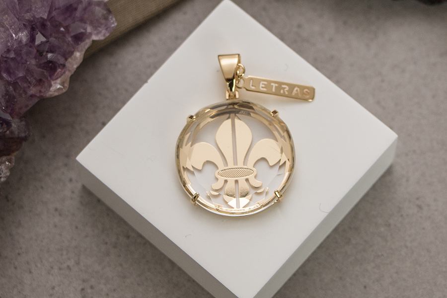 PINGENTE BANHADO EM OURO, CRISTAL REDONDO, TREVO