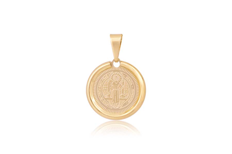PINGENTE BANHADO EM OURO SAO BENTO 18mm DIÂMETRO, LINHA TRADICIONAL