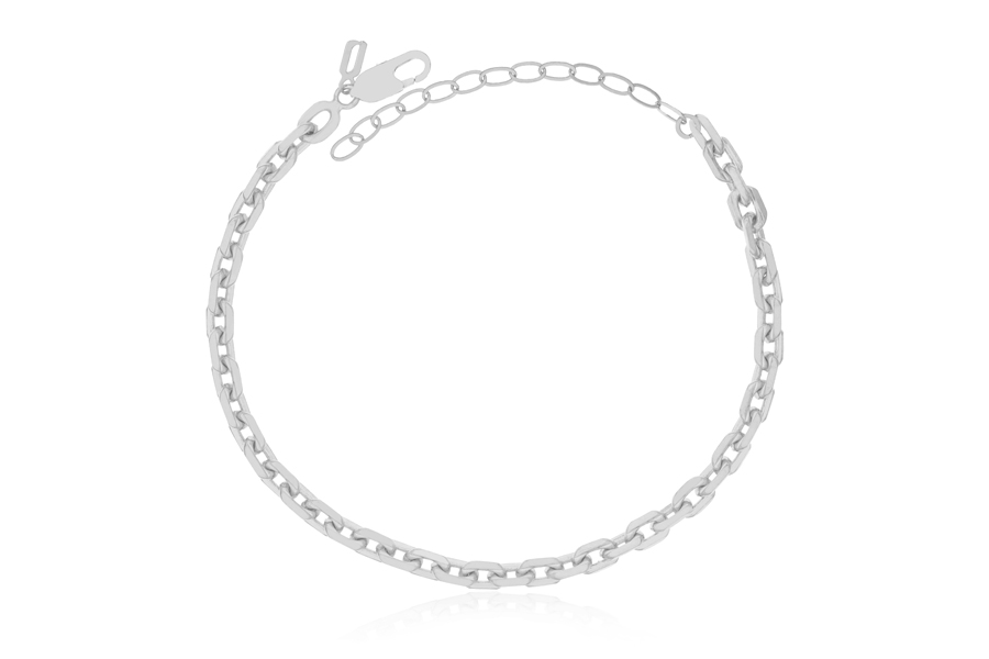 PULSEIRA BANHADA EM PRATA LEVE, ELO OVAL 1,20mm LARGURA, 16cm COMPRIMENTO, EXTENSOR 5cm COMPRIMENTO E MENINA 9mm DIÂMETRO