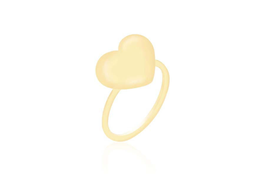 ANEL BANHADO EM OURO, MINGO, 12mm LARGURA, CORAÇÃO