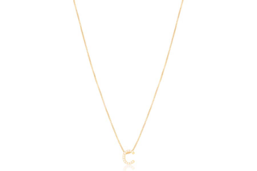GARGANTILHA EM PRATA, LETRA ''T'' CRAVEJADA 6mm ALTURA, ELO VENEZIANA, 44cm COMPRIMENTO