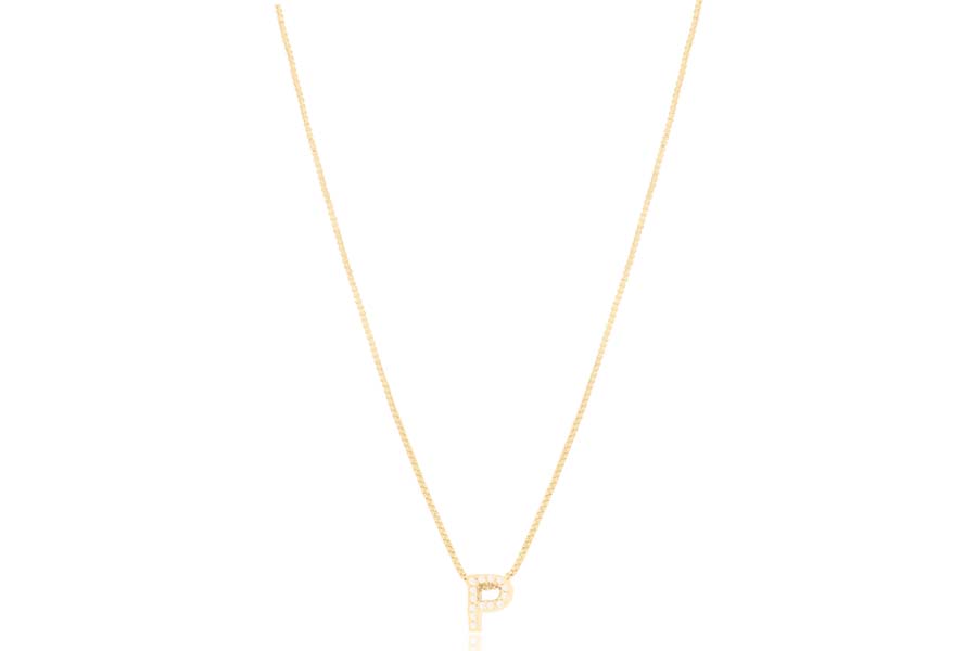 GARGANTILHA EM PRATA, LETRA ''C'' CRAVEJADA 6mm ALTURA, ELO VENEZIANA, 44cm COMPRIMENTO