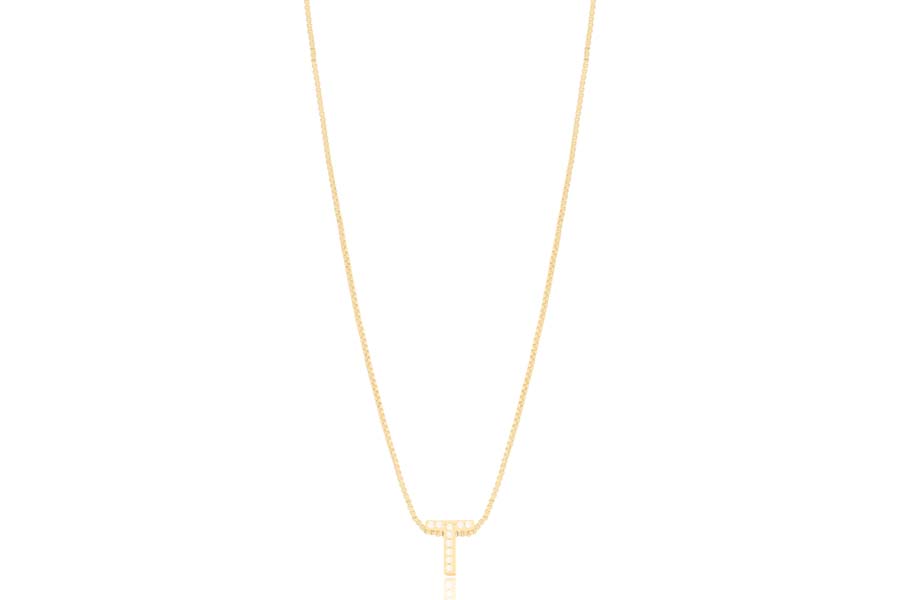 GARGANTILHA BANHADA EM OURO, ELO 0,70mm, 40cm COMPRIMENTO, EXTENSOR 10cm COMPRIMENTO, LETRA Q, 11mm ALTURA E PONTO DE LUZ 3mm