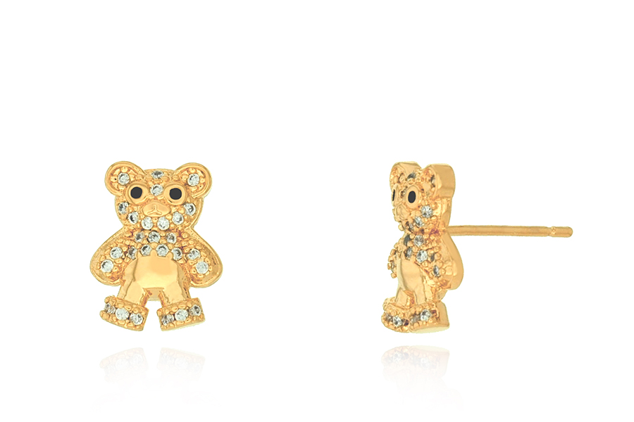 BRINCO BANHADO EM OURO, CRUZ 6mm ALTURA COM 6 ZIRCÔNIAS