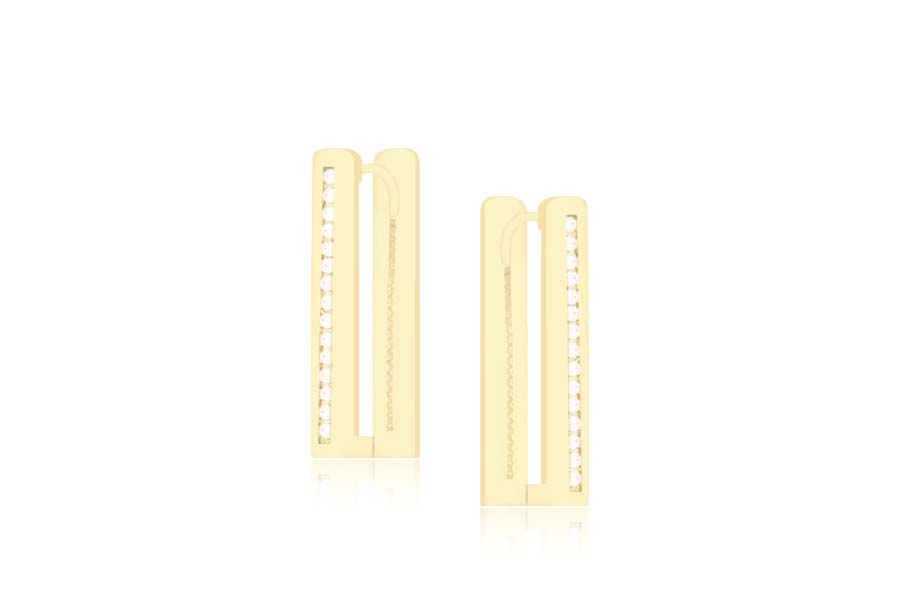 BRINCO BANHADO EM OURO, ARGOLA COM BAGUETES E ZIRCÔNIAS CRAVEJADAS