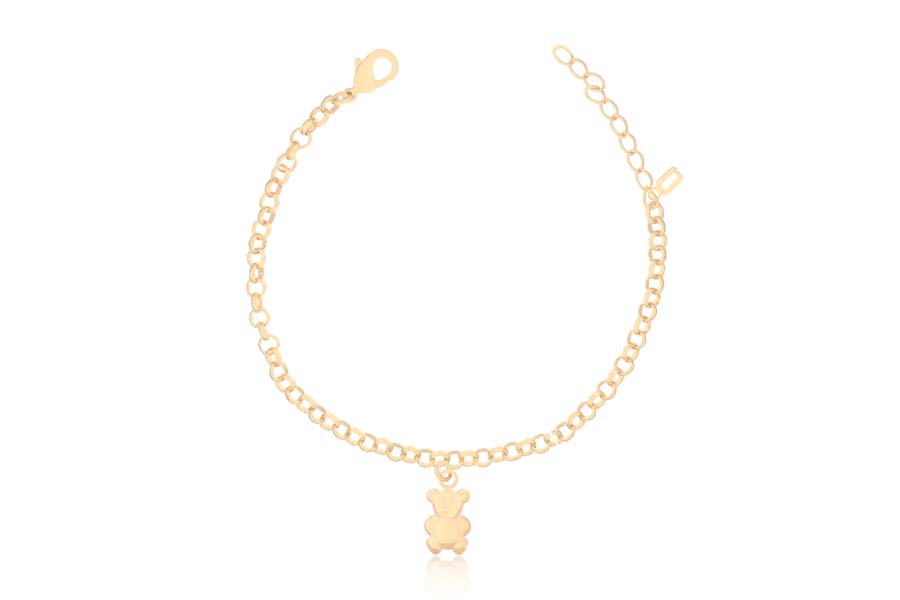 PULSEIRA INFANTIL BANHADA EM OURO, VENEZIANA LONGA 1,50mm ESPESSURA E CHAPINHA COM MENINO 24mm COMPRIMENTO