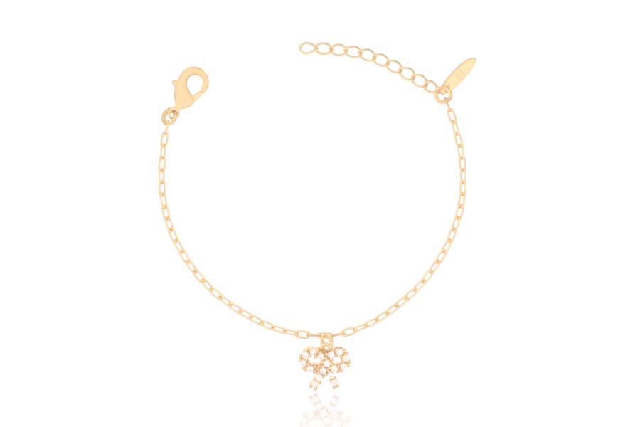 PULSEIRA INFANTIL BANHADA EM OURO, ELO 1,10mm COM BOLINHA, 14cm COMPRIMENTO, PONTO DE LUZ 3,50mm, AMOR DA DINDA 10mm COM CORAÇÃO