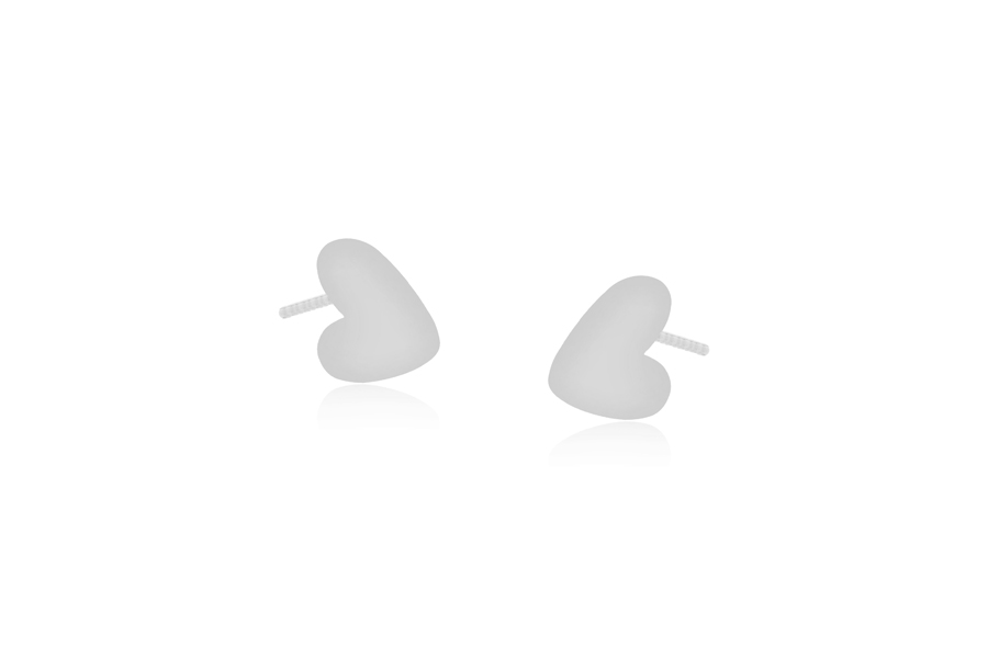 BRINCO BANHADO EM RÓDIO BRANCO, 3 CORAÇÕES, 10mm ALTURA