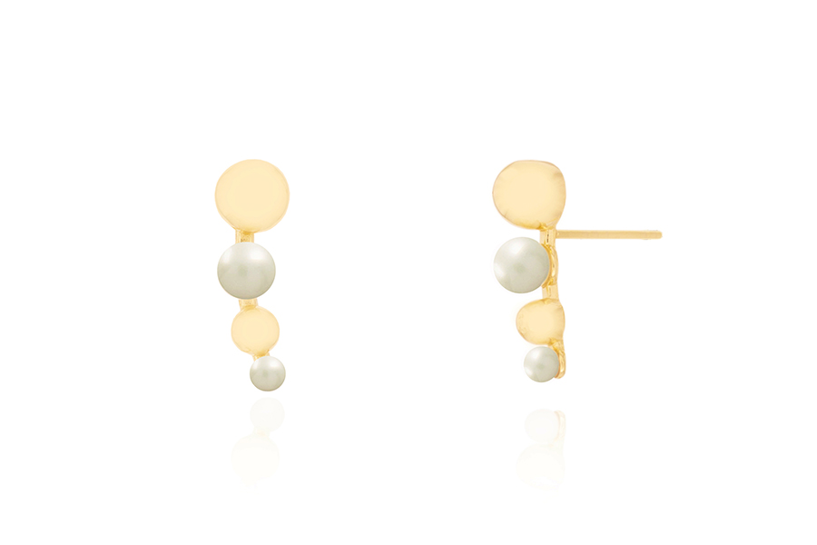 BRINCO EM PRATA, BASE PÉROLA 14mm DIÂMETRO, DOIS FIOS DE PÉROLAS EM DEGRADÊ 7cm ALTURA