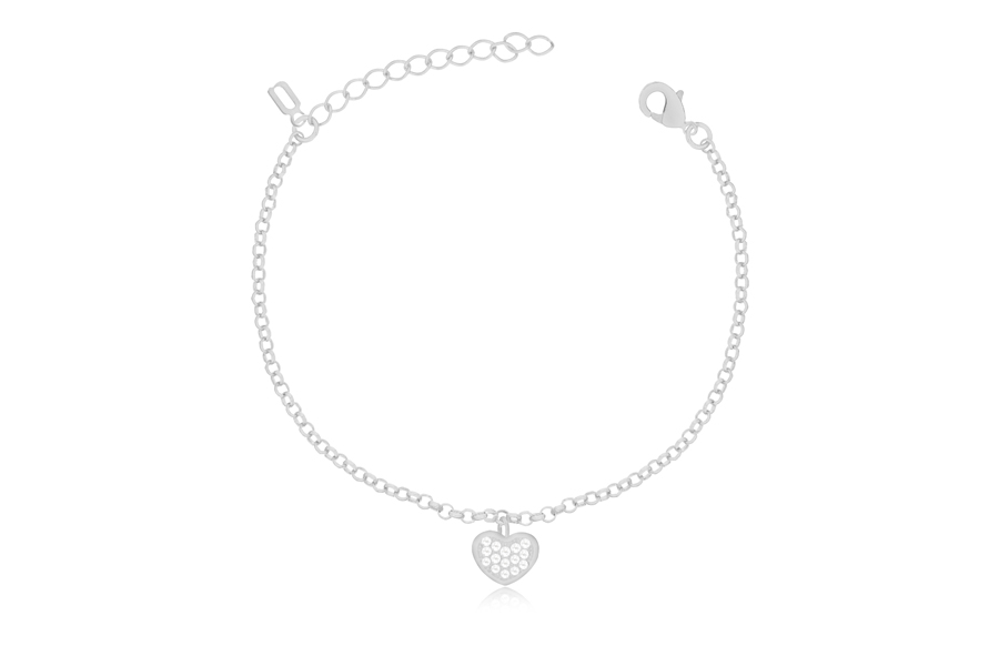PULSEIRA BANHADA EM PRATA LEVE, DUPLA, ELO 1,50mm ESPESSURA, PONTO DE LUZ 5mm E CORAÇÃO VAZADO 15,50mm LARGURA COM PATA