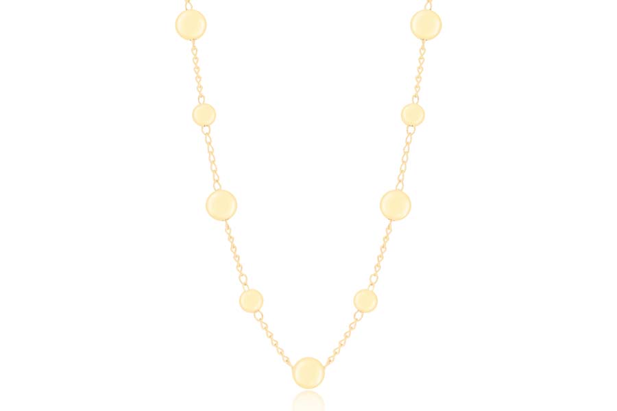 GARGANTILHA BANHADA EM OURO, VENEZIANA 0,80mm, BOLINHA 2,50mm, 45cm COMPRIMENTO E RELICÁRIO REDONDO 21mm DIÂMETRO