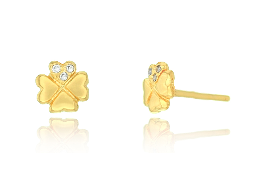 BRINCO BANHADO EM OURO, INFANTIL, PONTO DE LUZ E CORAÇÃO 4,50mm LARGURA, COM TARRAXA BABY