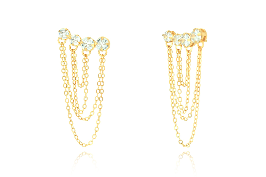 BRINCO BANHADO EM OURO, BASE CRISTAL TRAPÉZIO 11mm E CRISTAL RETANGULAR 19mm ALTURA