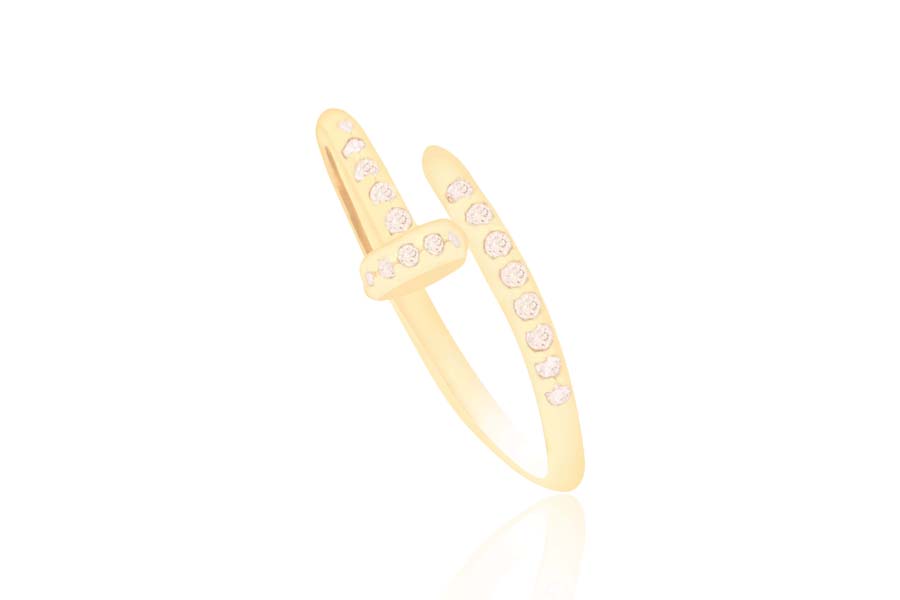 ANEL BANHADO EM OURO, 17mm LARGURA, COM 5 ZIRCÔNIAS
