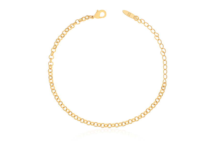 PULSEIRA BANHADA EM OURO, CORRENTE ELO PORTUGUÊS 2,50mm, 17cm COMPRIMENTO, EXTENSOR 5cm COMPRIMENTO E PESO 2,20g