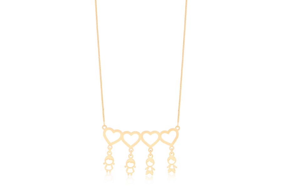 GARGANTILHA BANHADA EM OURO, ELO RABO DE RATO 1mm, 40cm COMPRIMENTO, EXTENSOR 5cm COMPRIMENTO E CORAÇÃO 27mm LARGURA