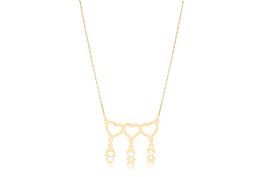 ESCAPULÁRIO INFANTIL BANHADO EM OURO, ELO 1,20mm, 45cm COMPRIMENTO E MEDALHA 9,5X7mm CORAÇÃO E CRUZ