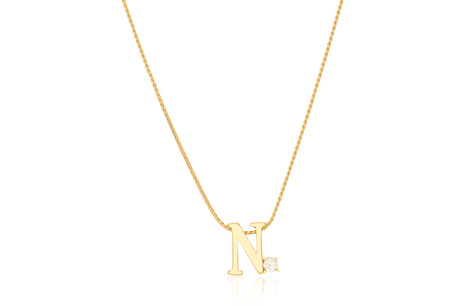 GARGANTILHA BANHADA EM OURO, ELO 0,70mm, 40cm COMPRIMENTO, EXTENSOR 10cm COMPRIMENTO, LETRA Q, 11mm ALTURA E PONTO DE LUZ 3mm