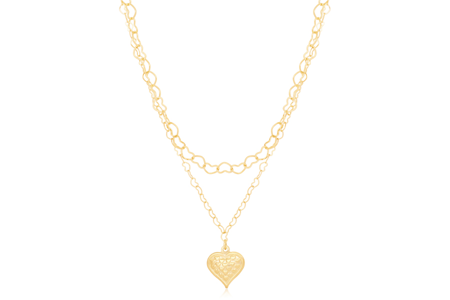 GARGANTILHA BANHADA EM OURO, ARO 1,50mm ESPESSURA, E CORAÇÃO 22mm LARGURA, LISO OU ACETINADO