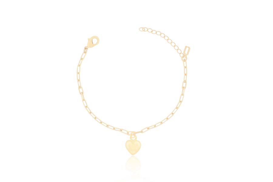 PULSEIRA BANHADA EM OURO, ELO 2,30mm LARGURA, 16cm COMPRIMENTO, EXTENSOR 5cm COMPRIMENTO E CORAÇÃO 7mm LARGURA, PARA QUALQUER COR