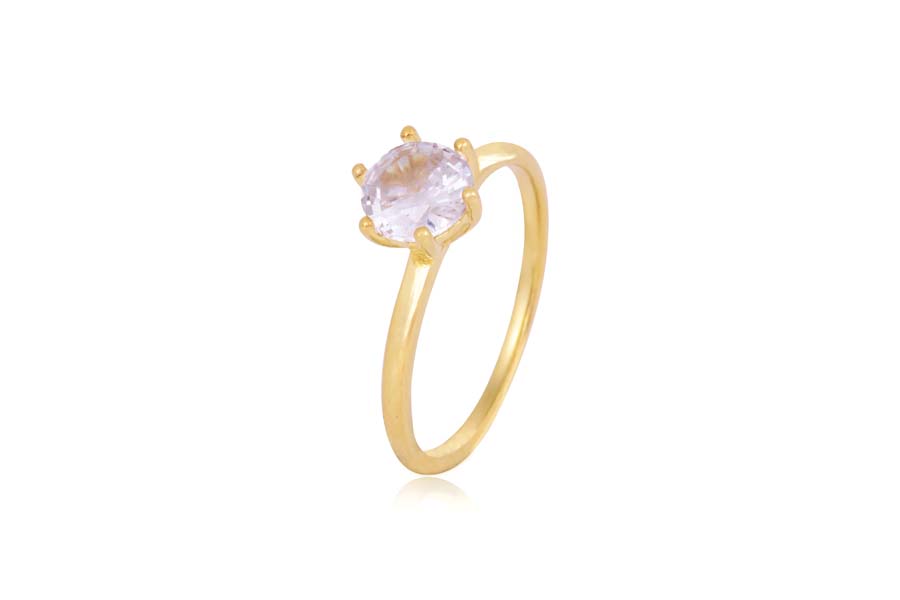ANEL BANHADO EM OURO, SOLITÁRIO 6mm