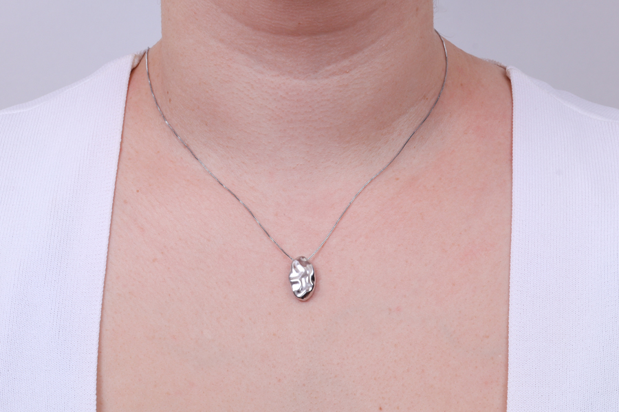 GARGANTILHA BANHADA EM RÓDIO BRANCO, VENEZIANA 0,80mm, 45cm COMPRIMENTO, CORAÇÃO 6mm LARGURA E GATO 7,50mm ALTURA