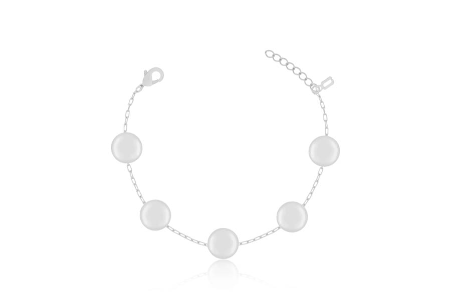 PULSEIRA BANHADA EM RÓDIO BRANCO, FECHO CLICK RETANGULAR CRAVEJADO 7mm LARGURA, ELO PALMEIRA, 18cm COMPRIMENTO