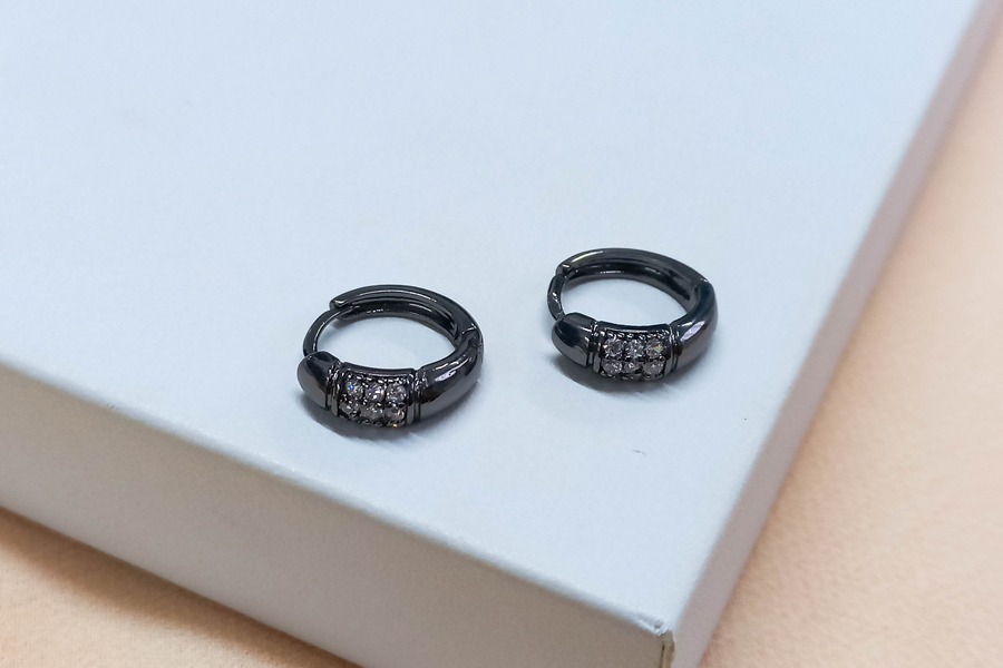 BRINCO BANHADO EM RÓDIO BRANCO, 15mm ALTURA COM 21 ZIRCÔNIAS