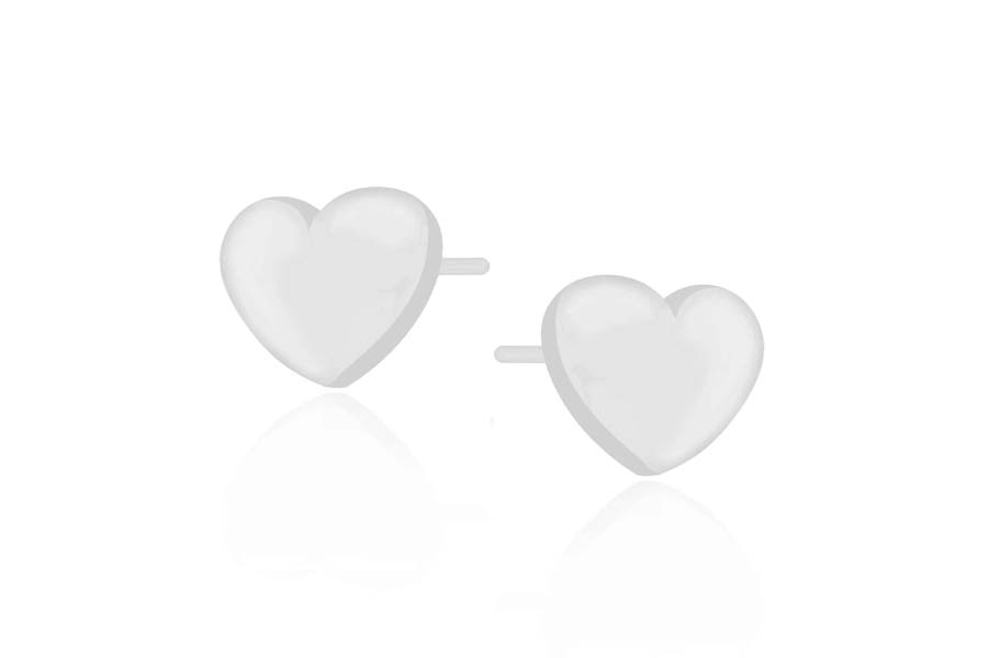 BRINCO BANHADO EM RÓDIO BRANCO, ARGOLINHA 14mm E CORAÇÃO 11mm LARGURA