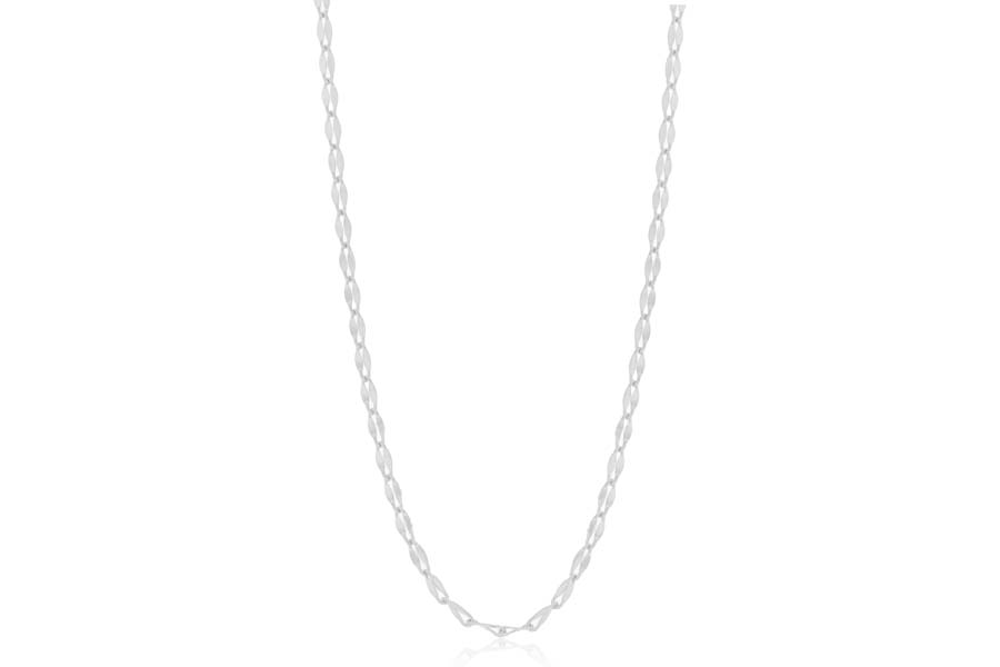 CORRENTE EM PRATA, ELO CADEADO TRABALHADO 2,10mm LARGURA E 0,50mm ESPESSURA, 38+5cm COMPRIMENTO