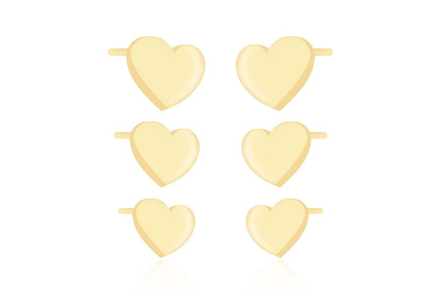 BRINCO BANHADO EM OURO, CORAÇÃO 10mm LARGURA, LISO OU ACETINADO