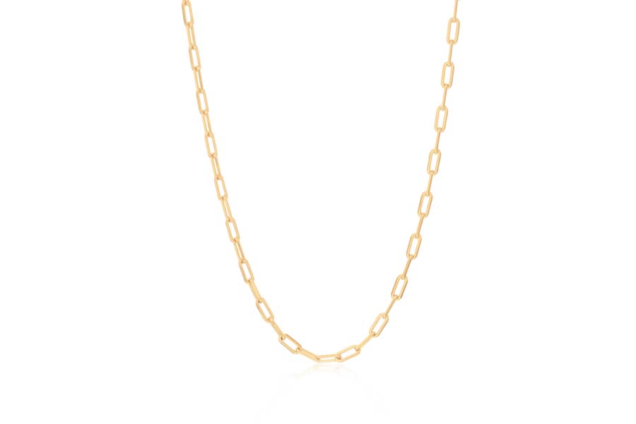 CORRENTE BANHADA EM OURO, ELO LACRAIA LAMINADA 3mm, 43cm DE COMPRIMENTO, EXTENSOR 5cm COMPRIMENTO E PESO 6g