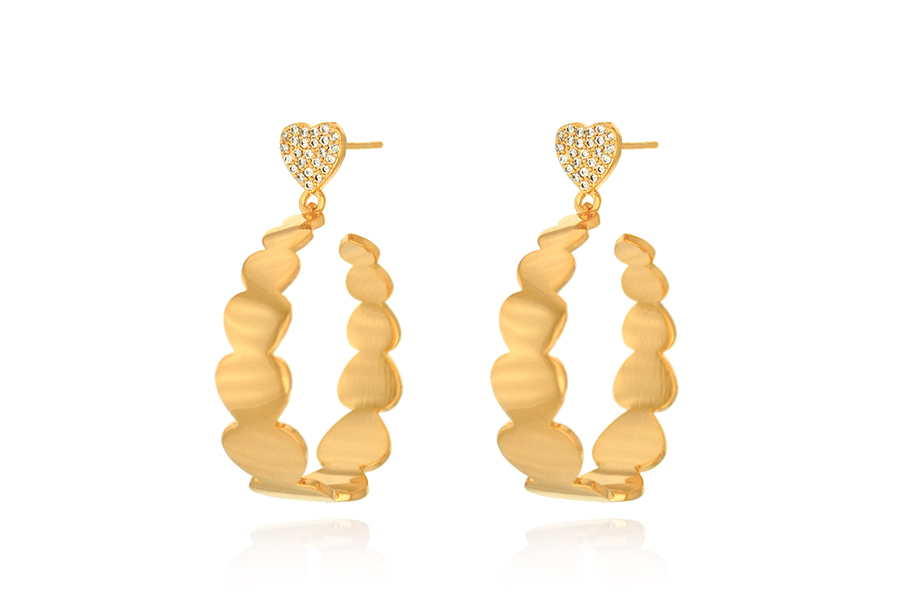 BRINCO BANHADO EM OURO, CORAÇÃO VAZADO 15mm LARGURA