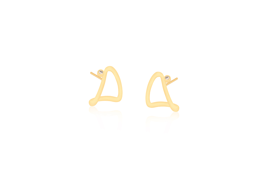 BRINCO BANHADO EM OURO, CURVADO, 2 FIOS TRANÇADOS, 1 COM DETALHE CRAVEJADO E 1 LISO