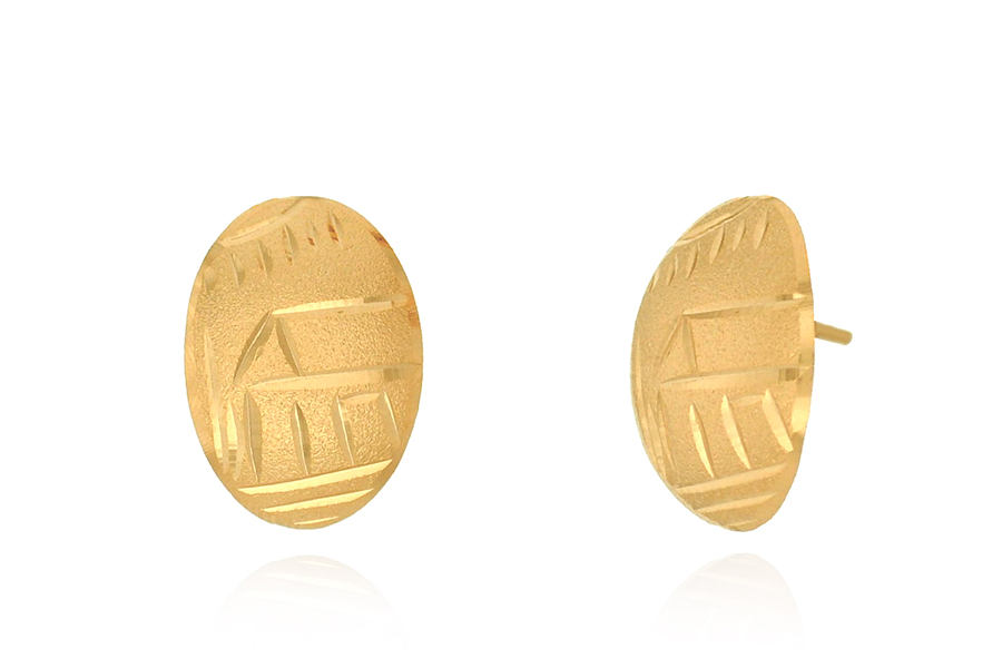 BRINCO BANHADO EM OURO, OVAL CRAVEJADO 21mm LARGURA E 30mm ALTURA, LATERAIS CRAVEJADAS