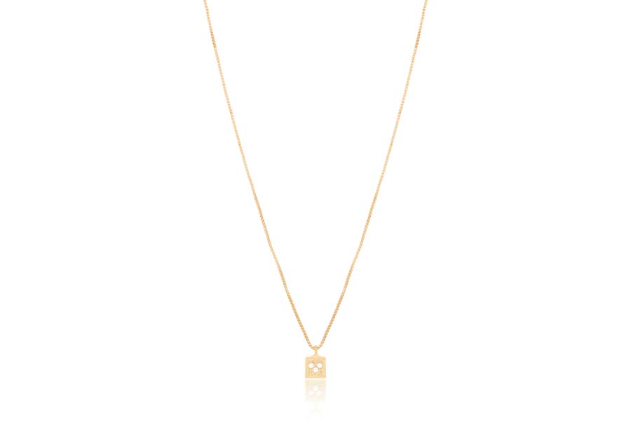 GARGANTILHA BANHADA EM OURO, ELO 2,40mm LARGURA, 60cm COMPRIMENTO E PINGENTE RETANGULAR 17X12mm, LIVRAI-ME DO MAL AMÉM