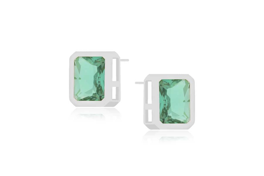 BRINCO BANHADO EM RÓDIO BRANCO, ZIRCÔNIA RETANGULAR 6x4mm