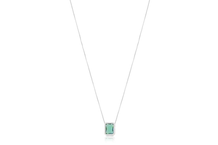 GARGANTILHA EM PRATA, 2 ZIRCÔNIAS GOTA E 3 PONTOS DE LUZ COM CRAVAÇÃO INGLESA, ELO CADEADO, 40+5cm COMPRIMENTO