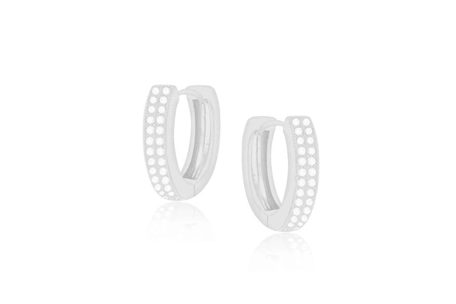 BRINCO EM PRATA, ARGOLINHA CLICK 11,80mm DIÂMETRO, ARO 1,80mm LARGURA, 1 FILEIRA DE ZIRCÔNIAS
