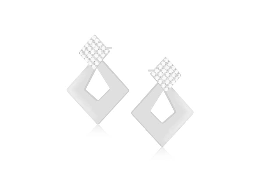 BRINCO EM PRATA, QUADRADO VAZADO COM 1 LADO CRAVEJADO, 5mm