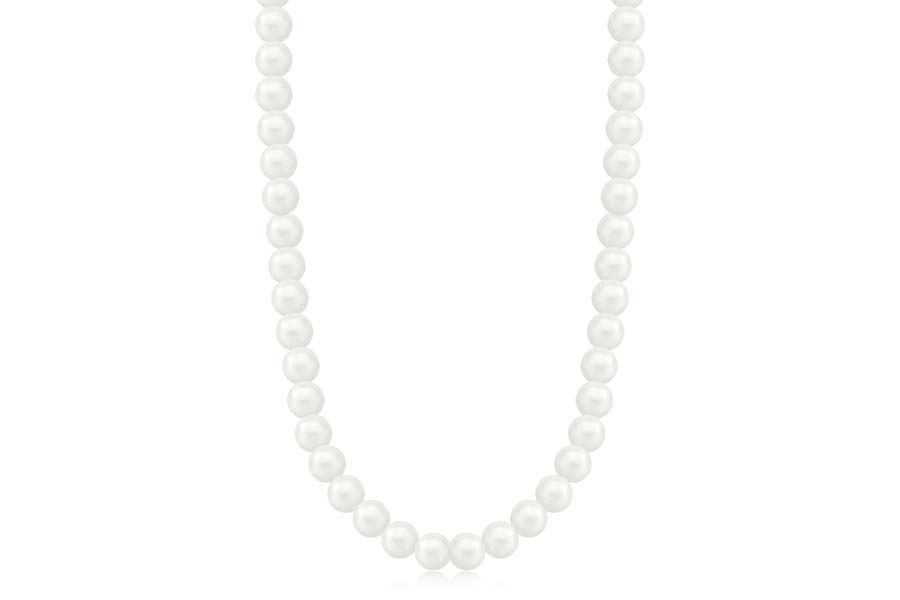 GARGANTILHA BANHADA EM RÓDIO BRANCO, ELO VENEZIANA 0,80mm, 40cm COMPRIMENTO, EXTENSOR 5cm COMPRIMENTO E PINGENTE SOJA COM PÉROLAS SHELL 3mm