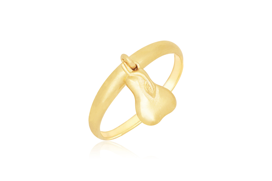ANEL BANHADO EM OURO, MEIO ARO CRAVEJADO E PINGENTE BONECO COM ZIRCÔNIAS, MENINA