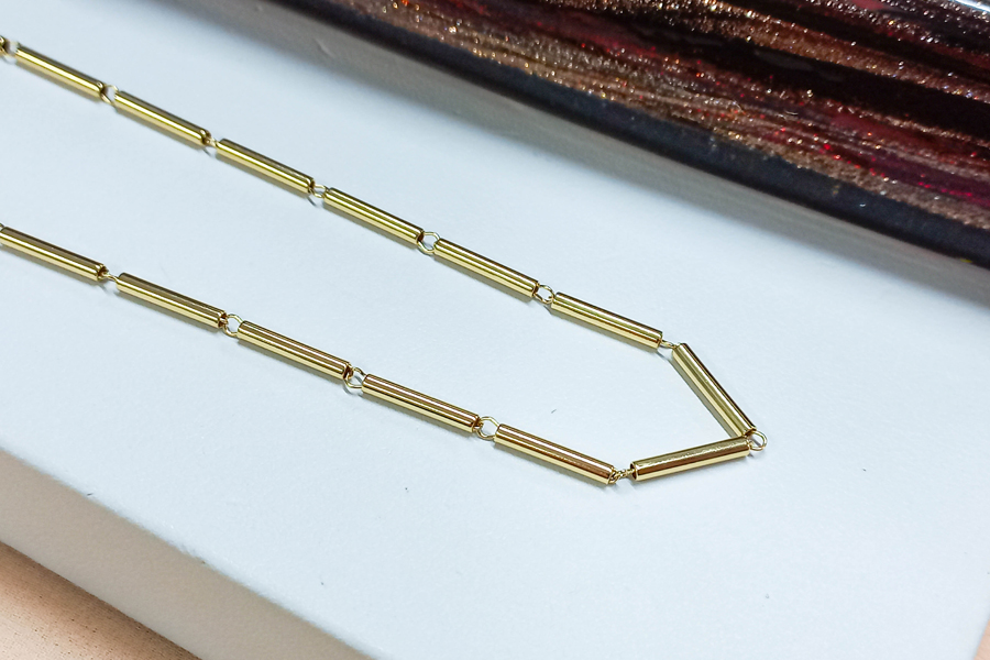CORRENTE BANHADA EM OURO, ELO PORTUGUÊS 7mm DIÂMETRO, 1,90mm ESPESSURA, 45cm COMPRIMENTO E PESO 28,70g